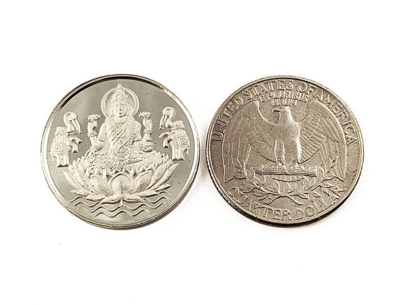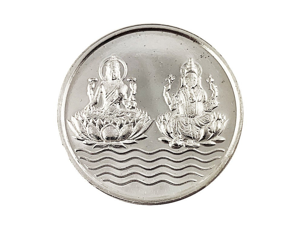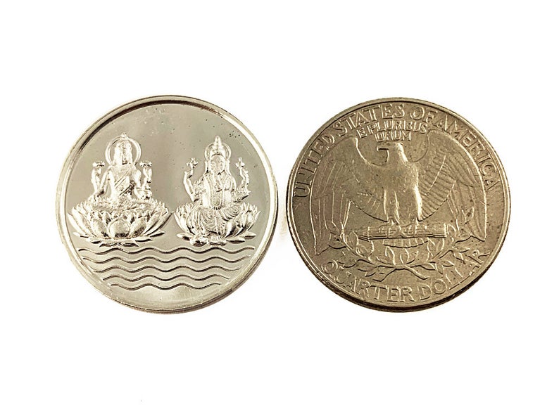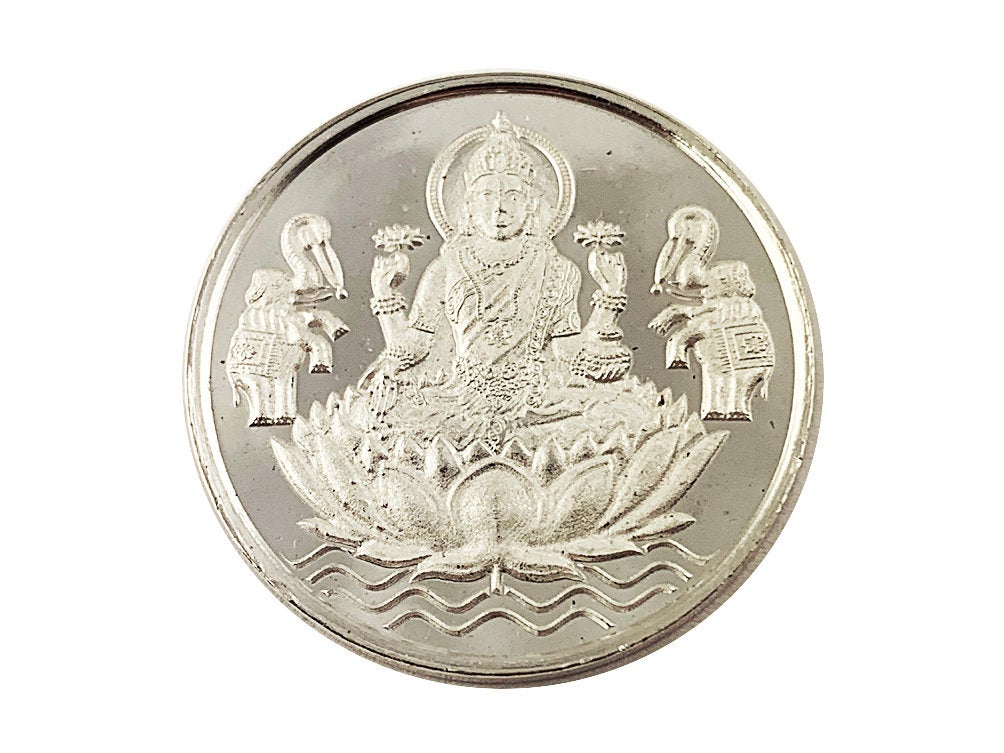 999 Pure silver, Made in India, Convo for bulk quantities, 1 Inch, 25mm, 5 gm This is a 5 Gram Pure Silver Lakshmi Ganesh Diwali Coin Made in India. Purity...