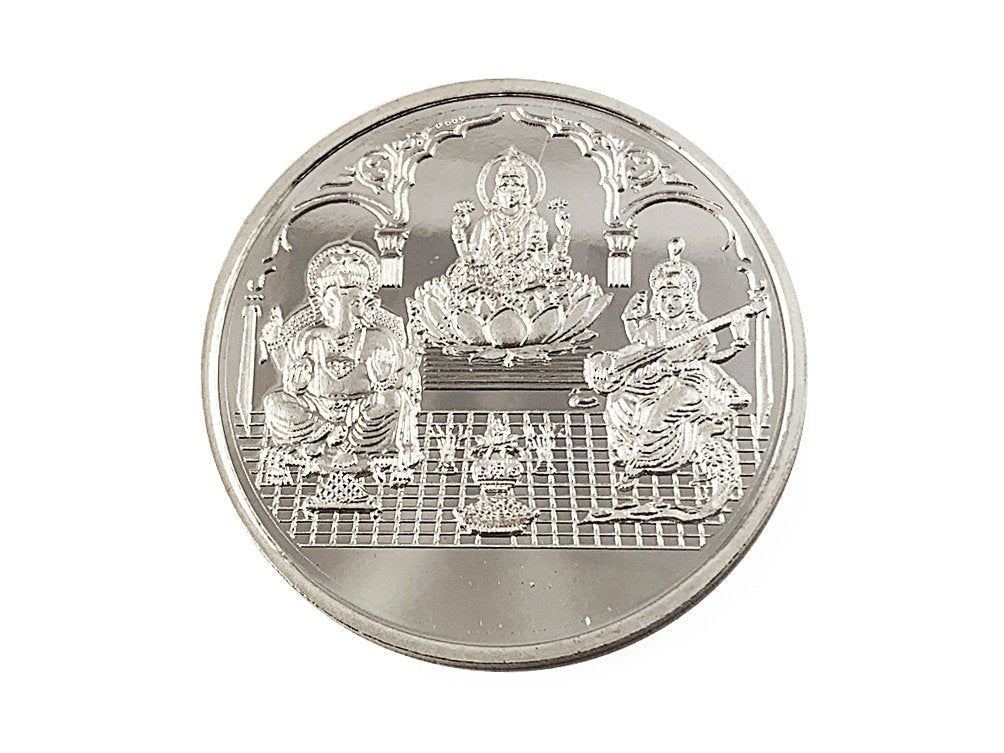 Lakshmi Ganesh 999 Pure Silver Coin hallmarked 999 5Gm Coin Hindu Religous Coin 25mm/1" Shubh Labh